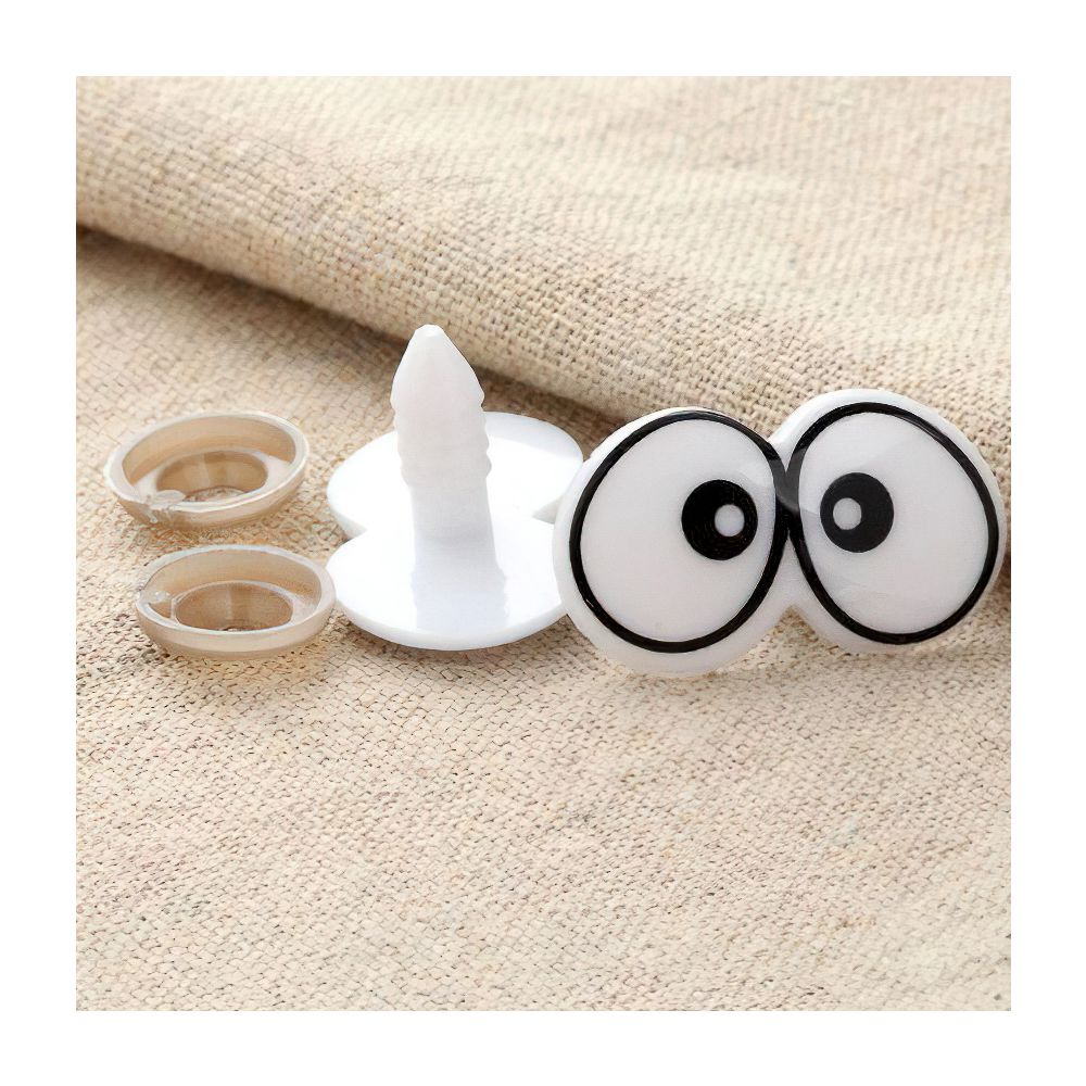 Bezpečnostní oči z tvrzeného plastu spojené jako jeden kus v černo bílé barvě v rozměru 29x17mm. Oči jsou vhodné pro výrobu hraček, dekorací a další doplňky. Díky bezpečnostní zarážce proti vypadnutí jsou oči odolnější vůči vytrhnutí nebo sloupnutí z výrobku.