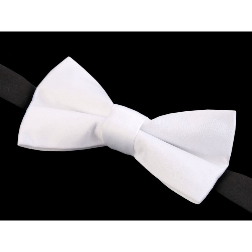 Dětský chlapecký saténový motýlek v bílé barvě od českého výrobce.