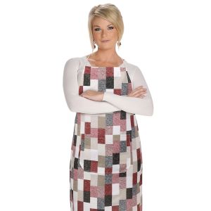 Kuchyňská zástěra vyrobená v kombinaci 70 % bavlna, 30 % polyester se vzorem hnědo-bílých kostiček. Zástěra má rozměr 67x84cm, a je tak vhodná na každou postavu. Opatřena je praktickou velkou kapsou uprostřed.