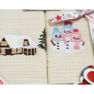 Souprava tří kusů kuchyňských utěrek z 100% bavlny v rozměru 45x70cm v designu červeného kára. Sada obsahuje 3 utěrky - 2 kusy s kárem v červené barvě a 1 kus s vaflovou vazbou v červené barvě.