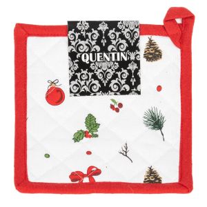 Souprava dvou kusů kuchyňských utěrek z 100% bavlny v rozměru 40x60cm se vzorem šišek, baněk a mašliček na bílém podkladu. Sada obsahuje 2 utěrky.