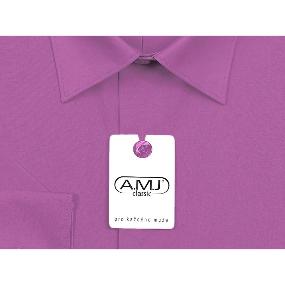 Pánská košile AMJ jednobarevná JDP081, fuchsie, dlouhý rukáv, prodloužená délka