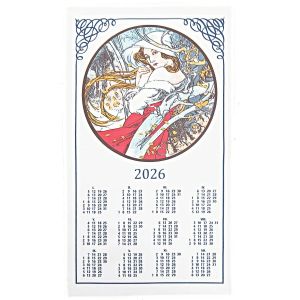 Textilní kalendář, utěrka ALFONS MUCHA 2026, béžová panna, 50x70cm, bez hůlky