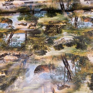 Ubrus PVC s textilním podkladem 224.01, myslivecký, podzim v lese, smetanový, š.140cm (metráž)