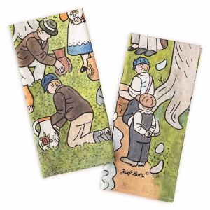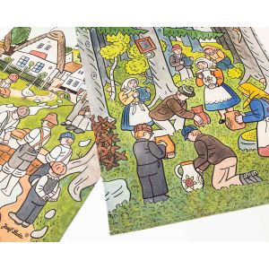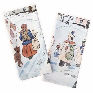 Bavlněné utěrky s kresleným vzorem v typickém ladovském stylu. Utěrky jsou ve vícebarevném provedení podkladu v rozměru 50x70cm. Utěrky mají jednostranný vzor všech 12 měsíců v roce a jsou vyrobeny ze 100% bavlny. Utěrky jsou v dárkovém balení po 12 kusech, každý měsíc má svůj typický vzor.