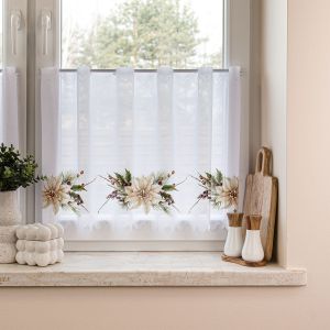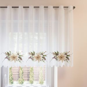 Metrážová vitrážová záclona polyesterový batist s vyšívaným vzorem motýlků na bílém podkladu, zakončenou bordurou, ve vrchní části s oky na navlečení na tyč. Záclona je vyrobena ze 100% polyesteru a je dostupná ve výšce 120cm. Výška záclony je měřena v nejdelším místě. Záclona je tkaná do panelů, které jsou široké cca 15cm a po ustřižení je záclona již zapravená.