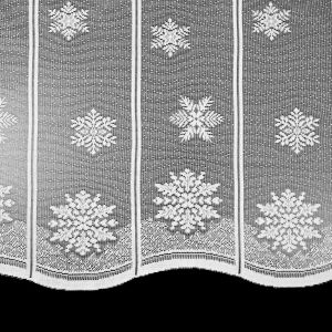 Metrážová žakárová vitrážová záclona se zimním vánočním vzorem zasněžených domečků a stromečků v zelené barvě na bílém podkladě, s bordurou. Záclona má v horní části pevný okraj s dírkami pro navlečení na tyč. Záclona je vyrobena ze 100% polyesteru a je dostupná v různých výškách. Výška záclony je měřena v nejdelším místě.